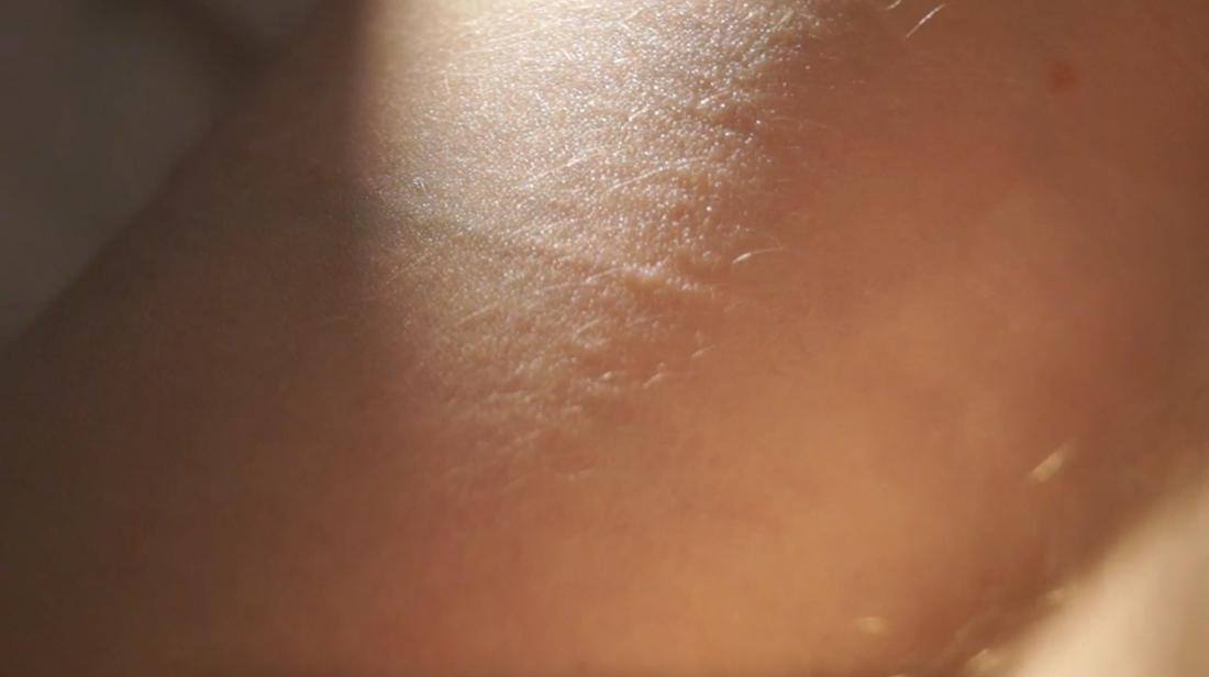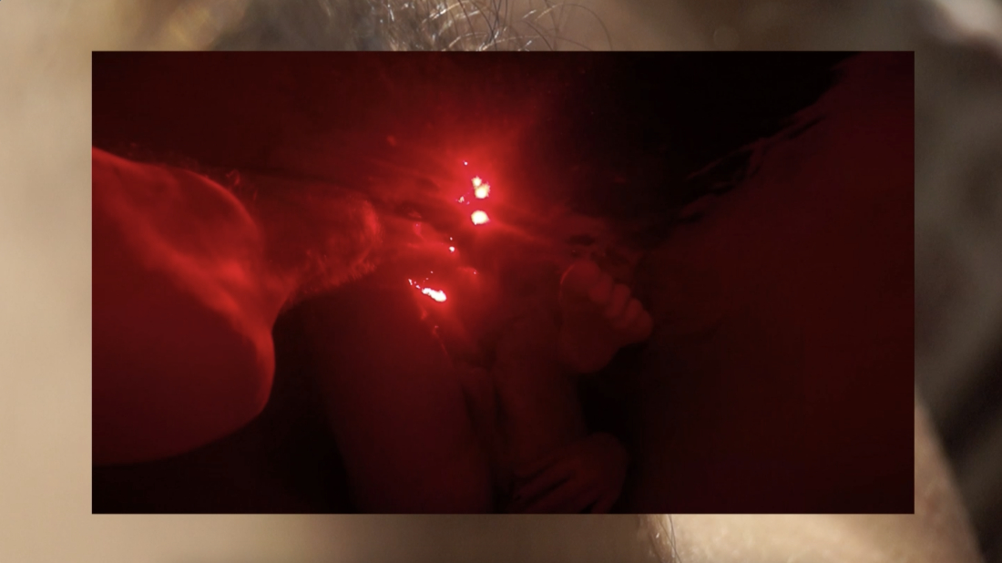 The top flashing video is a live-feed recorded during the live performance. The two adjacent videos were pre-recorded and projected in the gallery space next to the taut-based action. Red light, deodorant spray and microphone amplified breath were used to further arrest and penetrate the space.