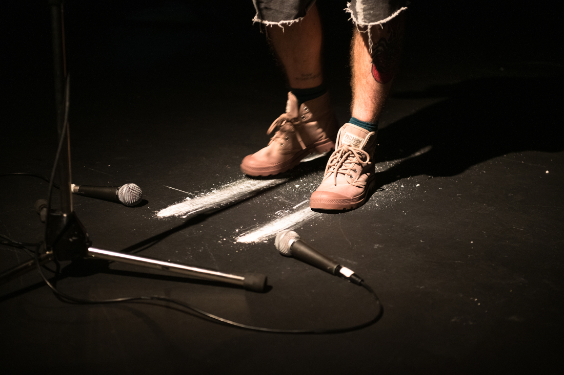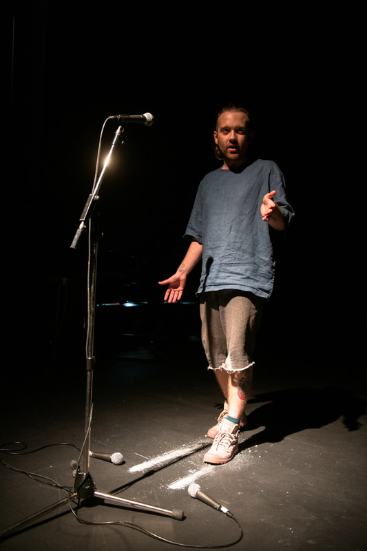 Stain was performed throughout 2019, and in 2020 the work was reformed into a radio play of sorts, composed and performed by myself, making use of appropriate dramaturgies in theatrical radio, as well as, like the original work, evoking approaches to texture, through sound.